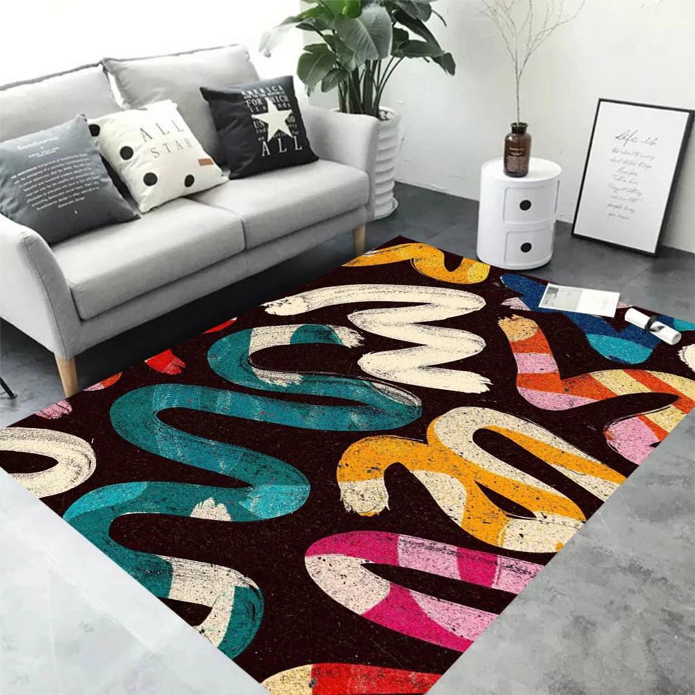 Dopamine Style Light Luxury Carpet Art Simple Rainbow Colorful Living Room Bedroom Bedside Decoration Washable Floor Mat