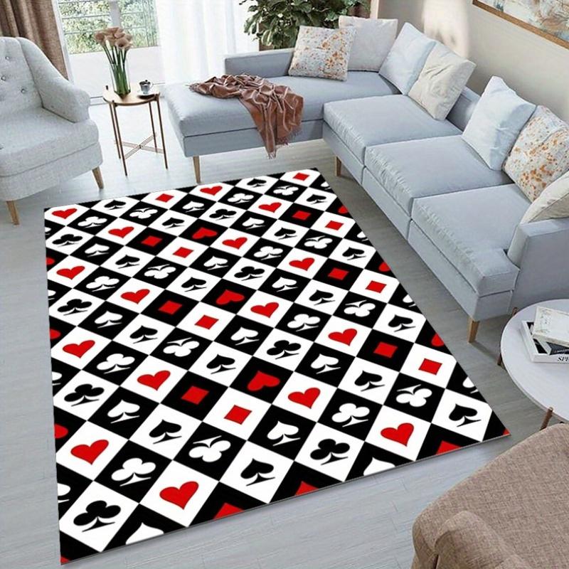 Crystal Velvet Poker Hearts Club Pattern Carpet, Rectangular, Indoor, for Bedroom, Porch, Living Room, Floor Mat Decoration