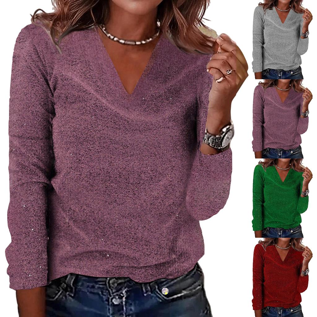 Women's Printed V-neck Long Sleeved T-shirt Pullover Top