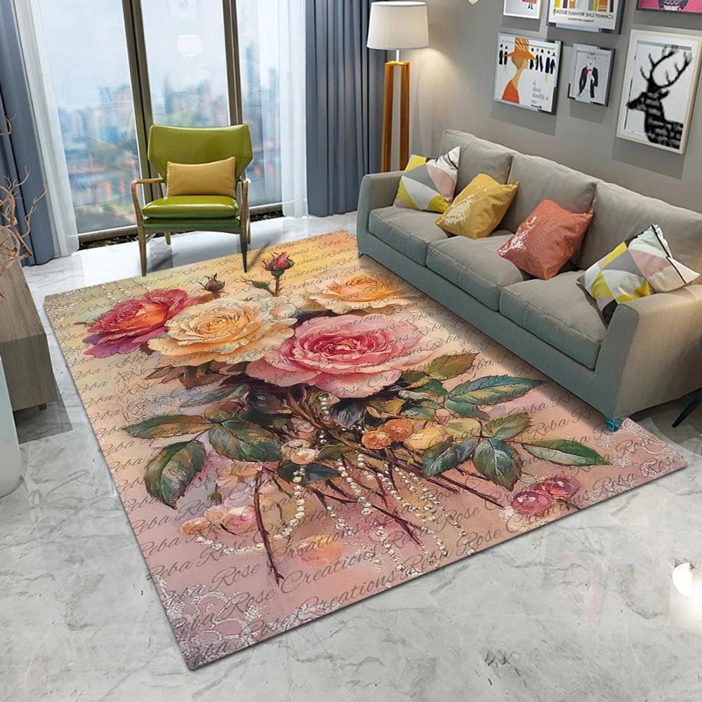 Garden Flower Art 3D Printed Area Rug for Living Room Bedroom Home Decor Aesthetic Carpet Washable Floor Mat