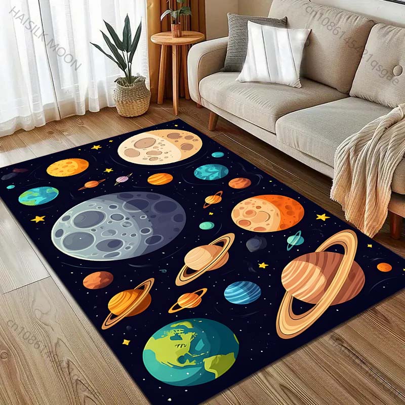 Universe Planet Earth Sun Printed Cartoon Carpet for Bedroom Living Room Bedside Sofa Floor Mat Modern Home Decor Area Rug