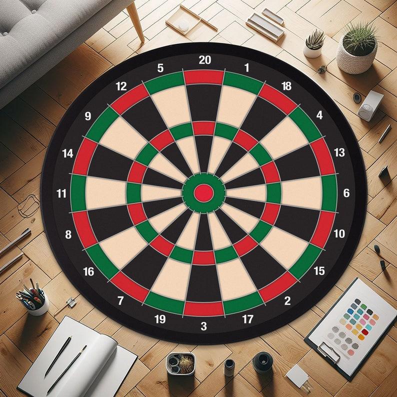 Dartboard Rug - Game Room Decor for Dart Players, Target Design Sports Mat, Unique Gift for Dart Lovers