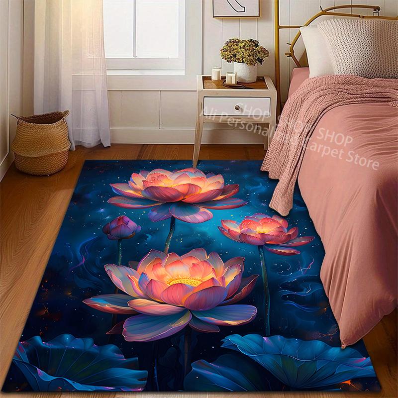 Beautiful Lotus Printed Carpet for Living Room Bedroom Sofa Home Decoration Non-slip Floor Mat Modern Carpet Large Size