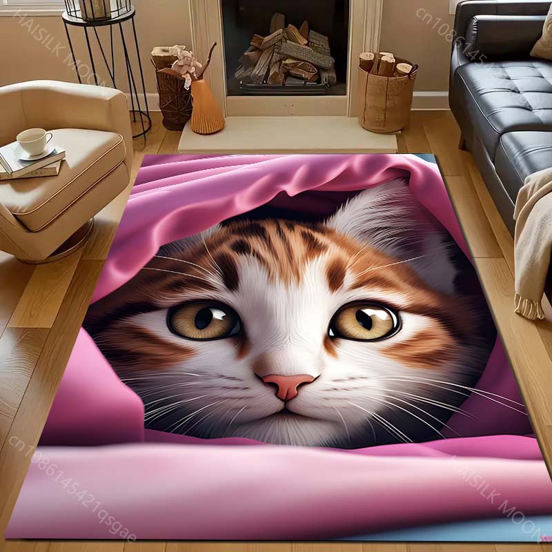 Cat Sticking Its Head Out Pattern Carpet for Bedroom Living Room Bedside Sofa Floor Mat Modern Home Decor Area Rug Large Size