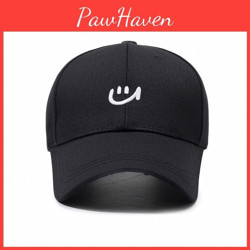 This Korean style happy face baseball cap features a breathable polyester-cotton blend with embroidered facial details, providing comfort and style. The adjustable strap ensures a snug fit, for versatile sizing. Suitable for casual outdoor wear in all seasons, it offers effective sun shading and ventilation. Wipe clean with a damp cloth to maintain its design and fabric quality.