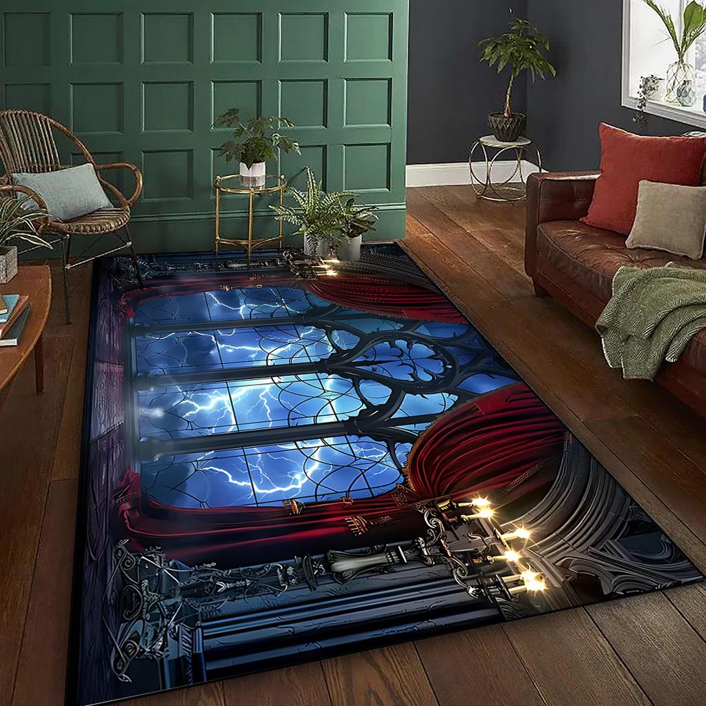 Medieval Castle Patterned Rug, 100% Polyester Washable Lightweight for Living Room Bedroom Patio Decor