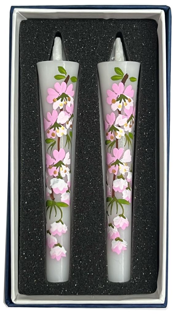 Hand-painted Flower Candles, Size 3, Cherry Blossom Design, Japanese Candles, Set of 2 (Hand-painted Cherry Blossom Design), Perfect for Buddhist