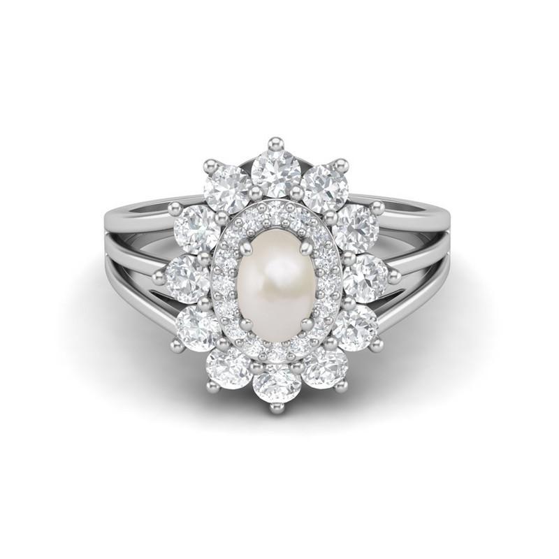 6X4MM Oval Pearl Gemstone 925 Sterling Silver Halo Split Shank Ring