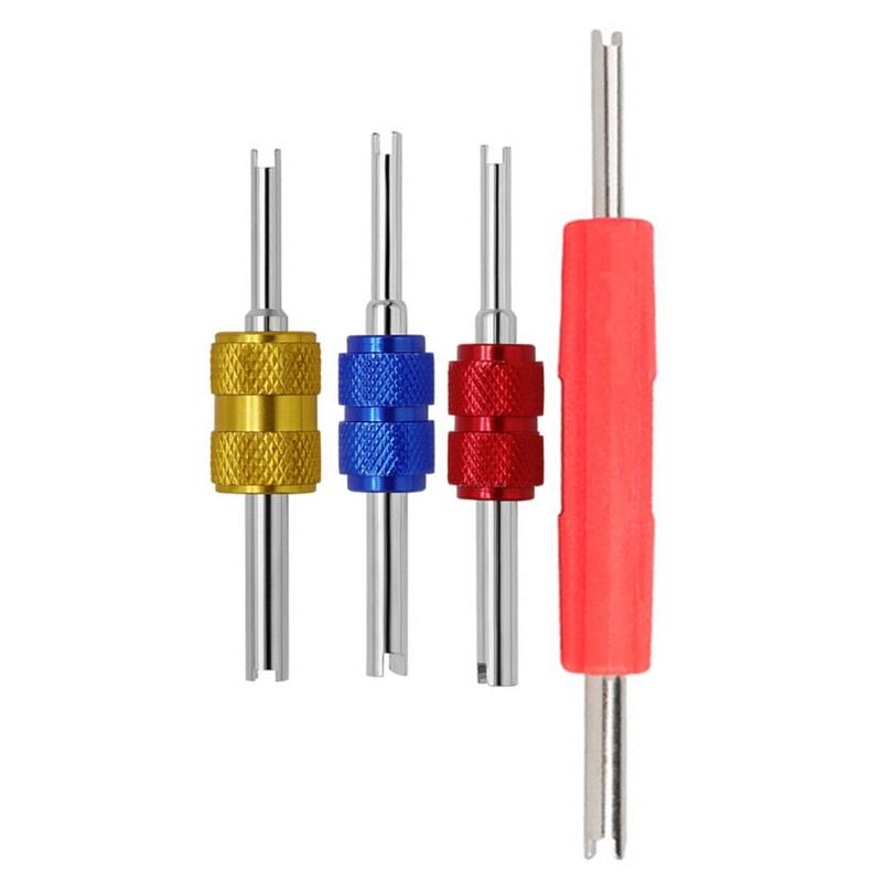 4Pcs Car Air Conditioner Valves Stem Cores Remover Wrench Double HVAC Valves Cores Removal Tool Set for Vehicles Truck