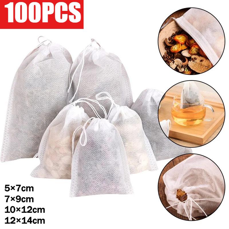 100pcs Tea Bags Non-woven Fabric Tea Filter Bags for Spice Tea Infuser with Heal Seal Disposable Seal Spice Filters Teabags