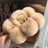 Extra Large Plush Rex Rabbit Fur Pom-Pom Hair Claw Clip - Winter Headwear Trend