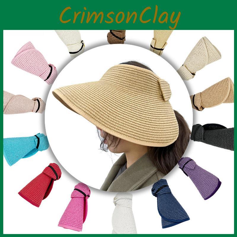 Straw Top Neutral Hat Sun Protection Cap With Butterfly Knot For Travel Beach
