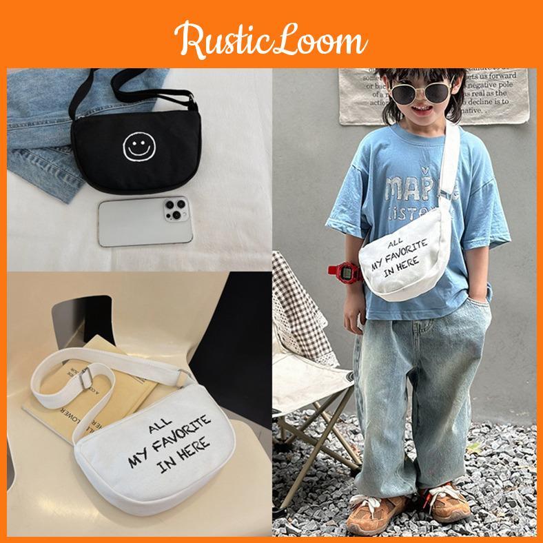 Kids Shoulder Nylon Bag With Letter And Smiley Face Print Design Outings For