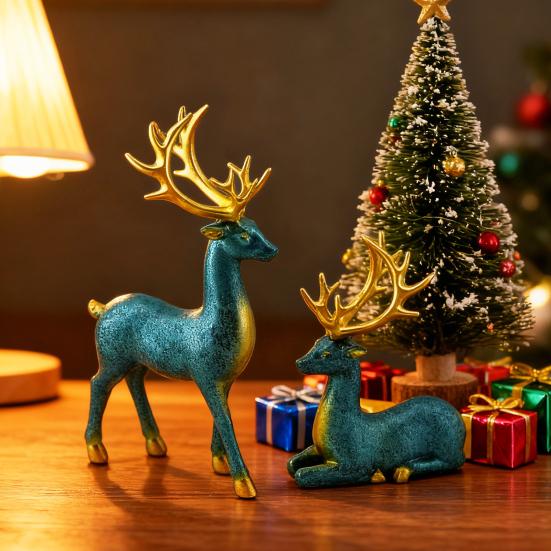 2/4Pcs Christmas Reindeer Statue Standing Sitting Elk Silhouette Figurine Deer Sculpture Home Office Desktop Decoration Ornament