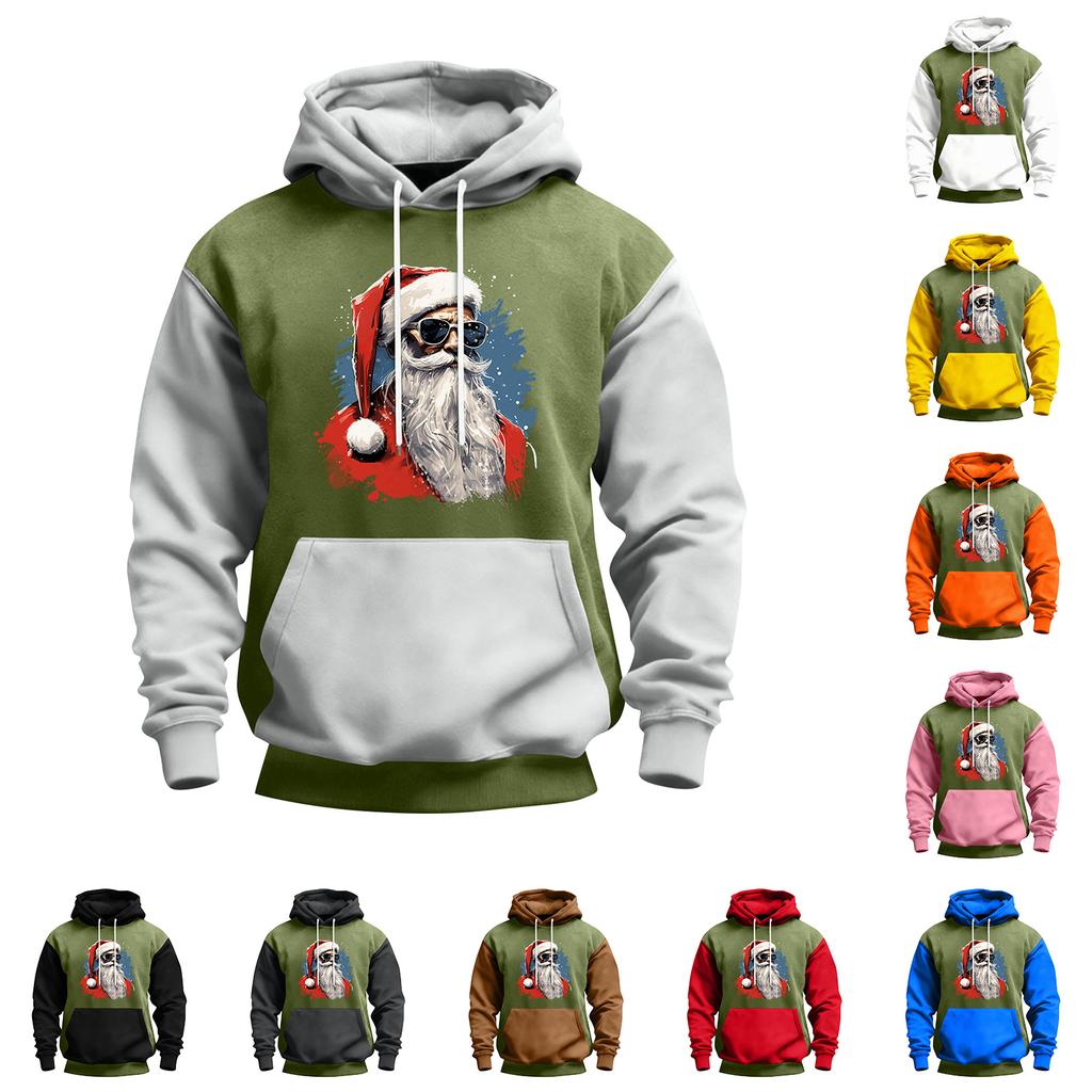 Men's Christmas Print Color Block Hooded Casual Sports Comfort Sweatshirt