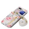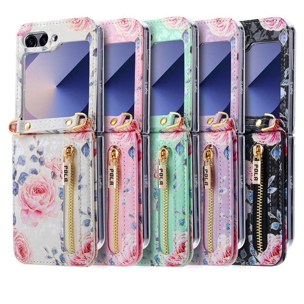 Zipper Crossbody Wallet Cards Slot Flower Case For Samsung Galaxy Z Flip 7 6 Flip 5 4 3 Leather Long Lanyard Strap Cover