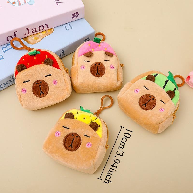 Capybara Plush Coin Purse Cartoon Small Fruit Bag Lovely Cartoon Bags Pendant Cute Watermelon Keychain Headphone Storage Bag