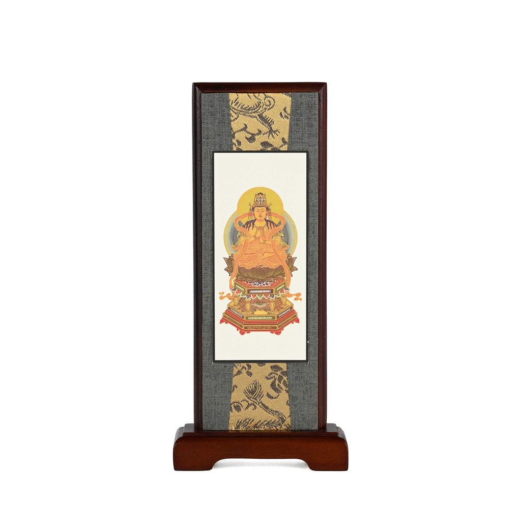 Urban Workshop Dainichi Nyorai Standing Hanging Scroll (Walnut Color) Wooden Frame Buddhist Altar Accessories Mini Size 20cm High X 9cm Wide