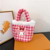 Winter New Plaid Handheld Fluffy Bag Girl Heart Cute Rabbit Female Storage Hand Carrying Cartoon Basket Bag