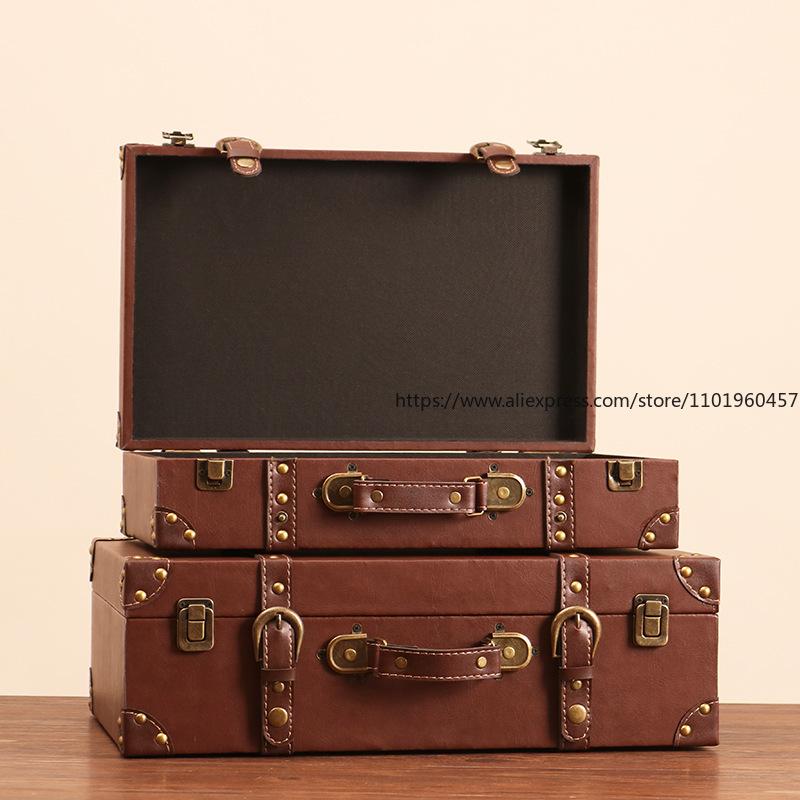 Vintage European-style Suitcase Photography Prop Antique Leather Trunk Clothing Storage Box Fashion Boutique Window Display