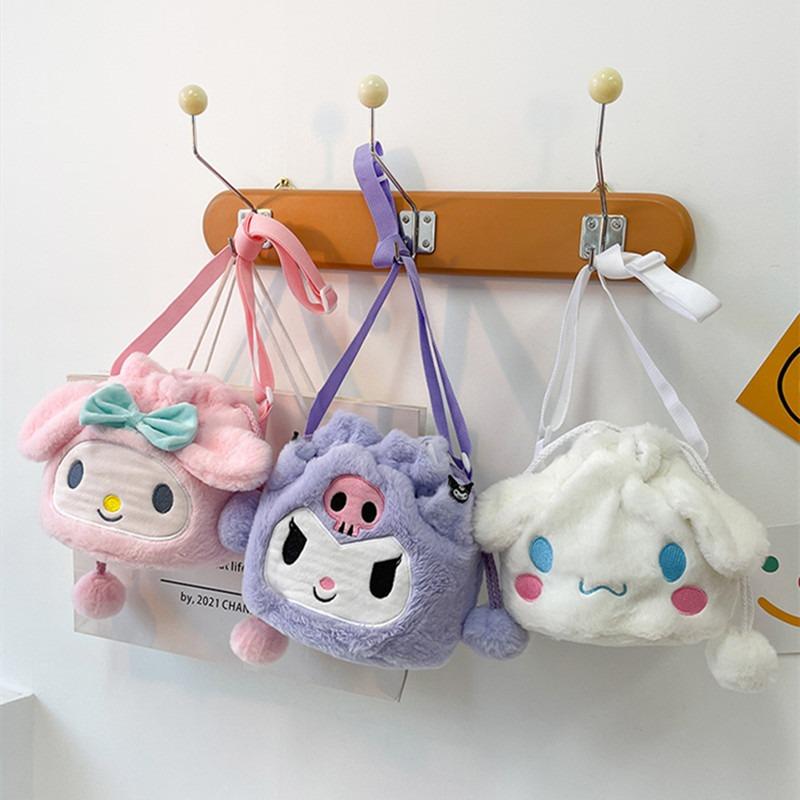 New Cartoon Rabbit Large-capacity Bucket Messenger Bag, Cute Girl Drawstring Plush Bag