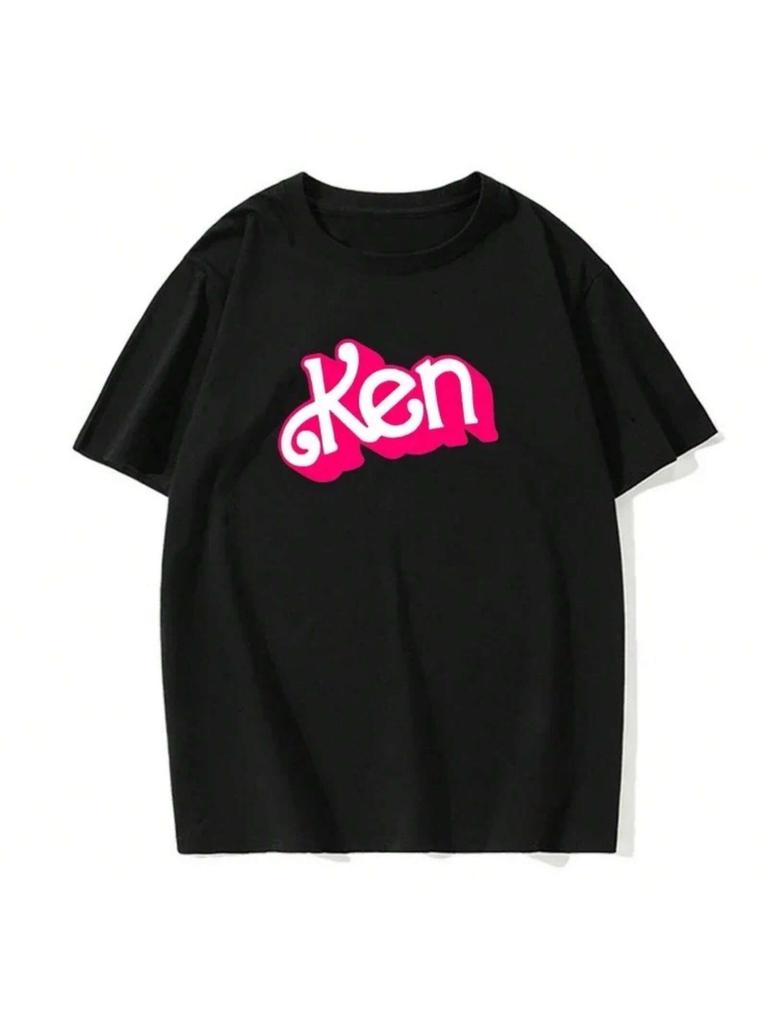 Men Summer Fashion T-Shirt Pink Ken Letter Print Tops Tees Male Casual O-Neck Clothing Short Sleeve Harajuku Streetwear