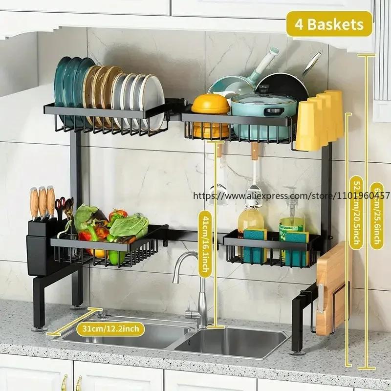 Over The Sink Rack, Fits All Sinks, Adjustable Dish Drying Rack, Dish Drying Rack Above Kitchen Sink, Easy Installation