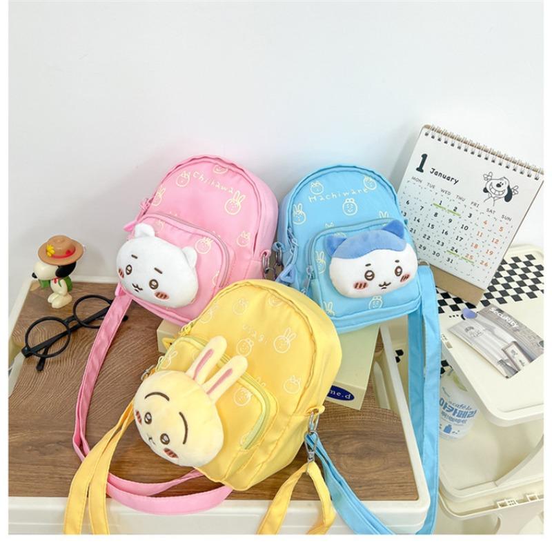New Cute Cartoon Jiyi Bear Doll Canvas Small Square Bag with Sweet Personality Out of the Street Single Shoulder Crossbody Backpack Female