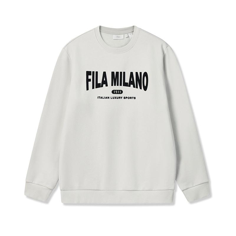 Fila Milano Series Simple Classic Retro Casual Versatile Warm Comfortable Crew Neck Sweatshirt Men Sweatshirt Light-Gray Cream F11M545205FIV