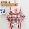 Cute Sweet Cartoon Doll Backpack Pink and White Plaid Niche Design Girl Bag Student Backpack Gift