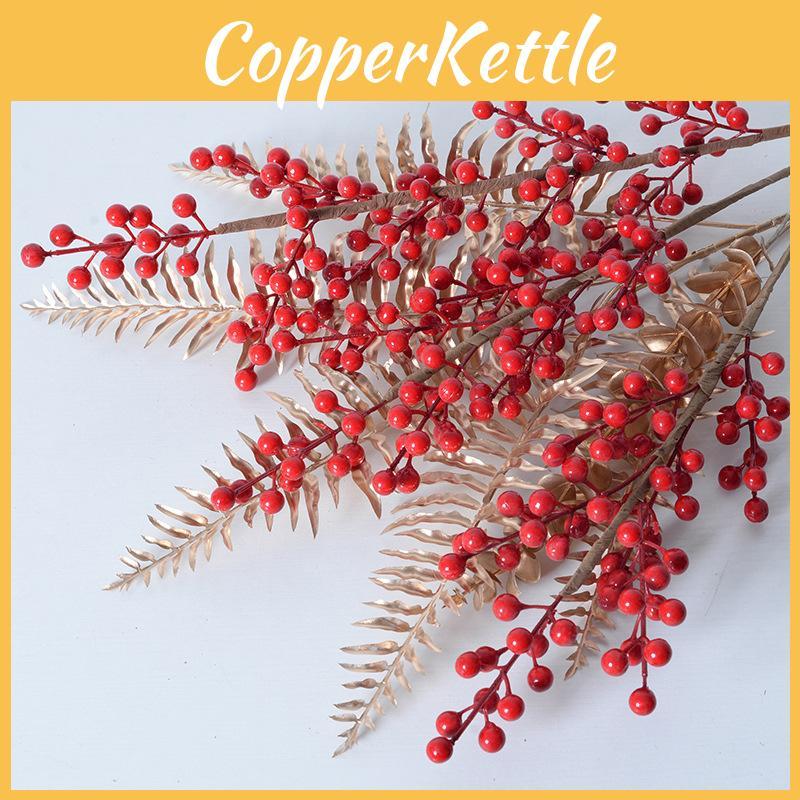This artificial gold-colored foliage features detailed designs including wintergreen, ginkgo, and eucalyptus leaves, crafted with paint, embossing, and 3D printing techniques, it is ideal for festive decorations and indoor arrangements. Easy to maintain, simply wipe clean with a damp cloth for reuse.