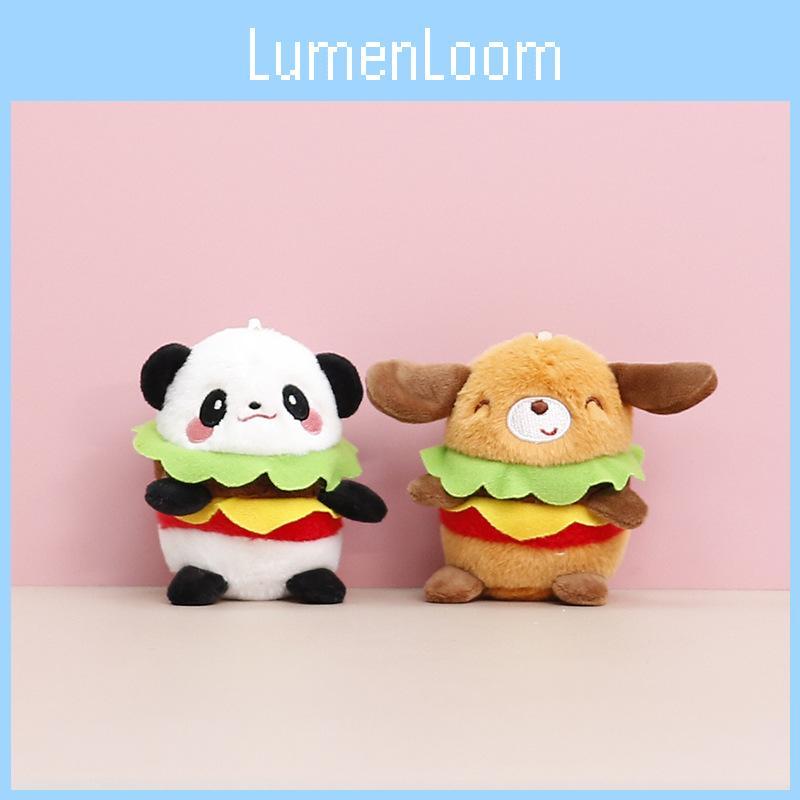 Hamburger Dog Panda Plush Keychain Animal Toy Pendant Cartoon Gift Decoration
