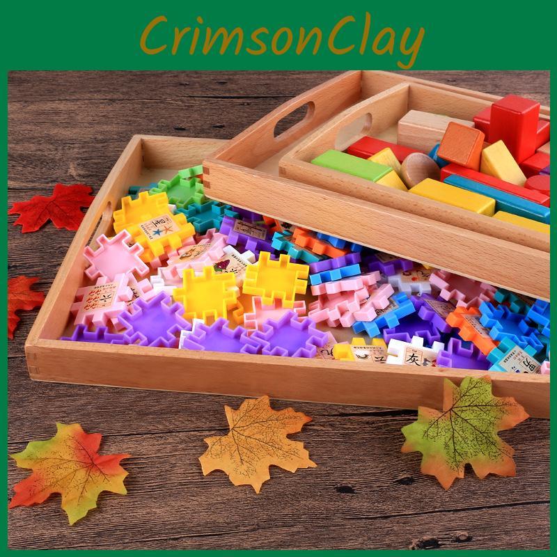 This wooden tray set features durable beech wood construction with dimensions of 25-34cm, designed to withstand daily use. The trays include various sizes and finishes, such as red sandalwood and black ebony, supporting early childhood learning activities. Suitable for educational settings, they promote fine motor skills and spatial awareness. Easy to clean with a damp cloth, these trays are ideal for classroom or home Montessori-inspired learning environments.