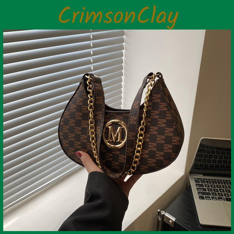 Armpit Bag Retro With Letter Printing Design And Chain Shoulder Strap For Daily