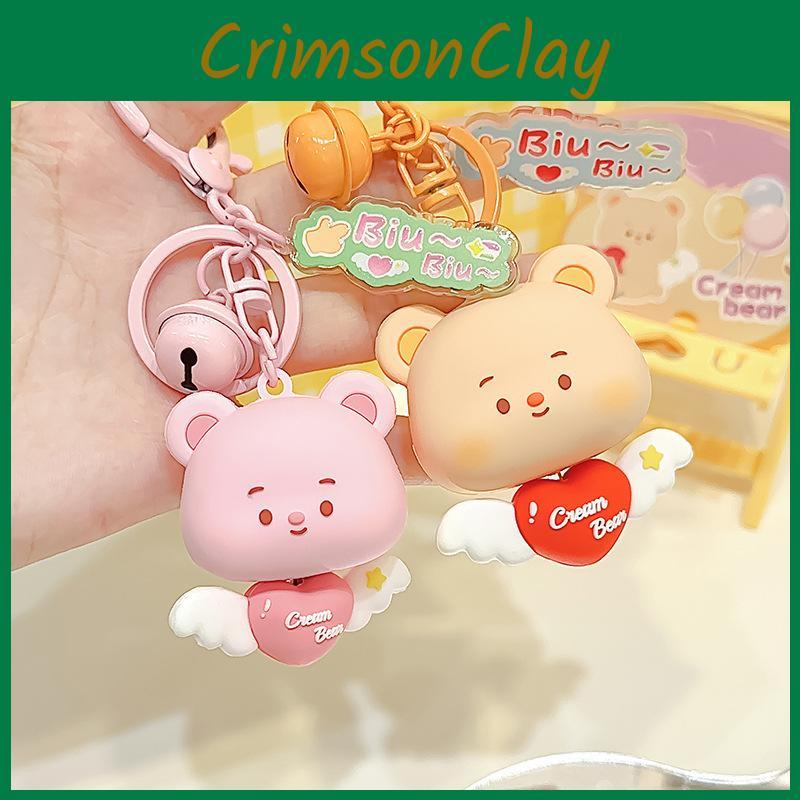 Adorable Design: Features a charming cream bear with heart motifs, perfect for adding a playful touch to your keys or bags.