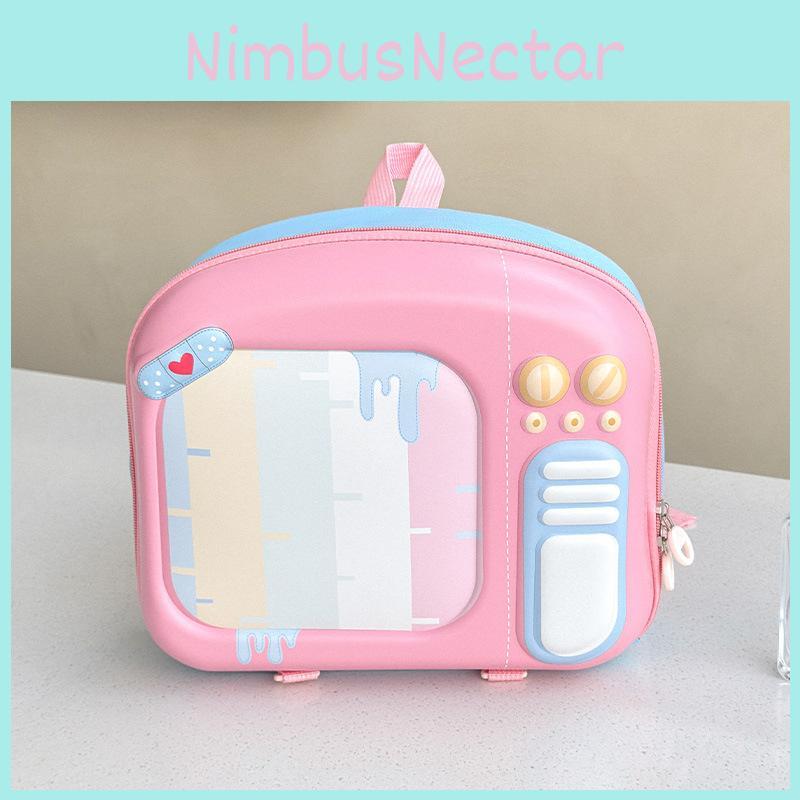 This baby backpack features a playful TV-shaped design with breathable Oxford lining, providing comfort and durability. Made of PVC, supporting early learning activities. The backpack offers waterproof, thermal, and wear-resistant qualities, ideal for daily use. Equipped with a cushioned back strap system, it helps reduce load for young children. Easy to clean with a wipe of a damp cloth, it suits preschoolers for outdoor outings and daily commutes.
