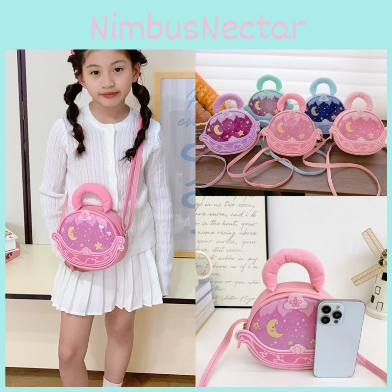 Simple Solid Color Star Moon Print Children Round Shape Crossbody Bag For Girl