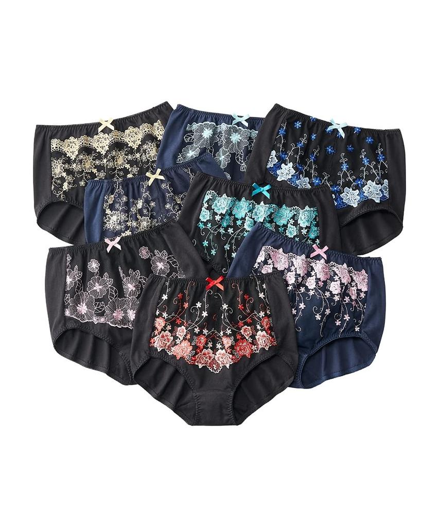 These elegant, deep-leg shorts feature gorgeous embroidered lace on the front. The fabric is made of 100% cotton, which is gentle on the skin. The inside of the lace is also lined with 100% cotton, making them extremely comfortable.