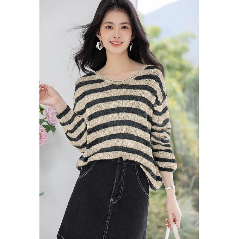Mokana Korean Style Striped Long-Sleeve Knit Top