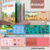This wooden busy book features interactive puzzles and sticker activities designed to promote early learning and cognitive development. Made of durable wood, it measures approximately28*20.5*1.8 cm, with vibrant illustrations for topics like animals, numbers, and transportation. Its compact size makes it suitable for tabletop use during travel or at home. Easy to clean, simply wipe with a damp cloth to maintain its quality.