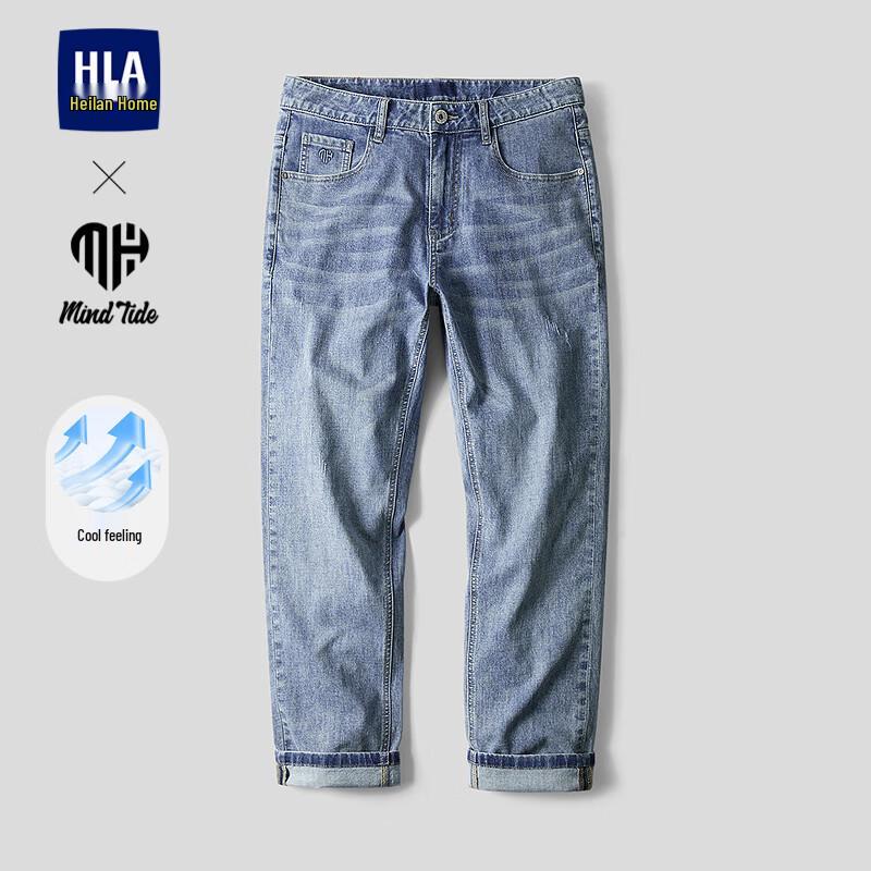 HLA Men's Washed Cooling Straight-Leg Cropped Jeans