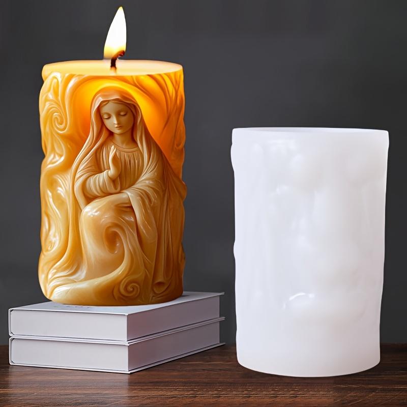 Virgin Mary Relief Cylinder Candle Silicone Mold Prayer Goddess Mary Resin Mould Curling Hair Mary Relief Cylinder Gypsum Molds