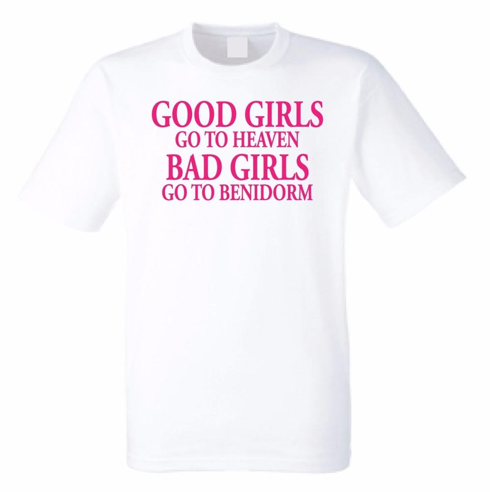 Good Girls Goto Heaven Bad Girls Goto Benidorm T-Shirt - Novelty Unisex T Shirt