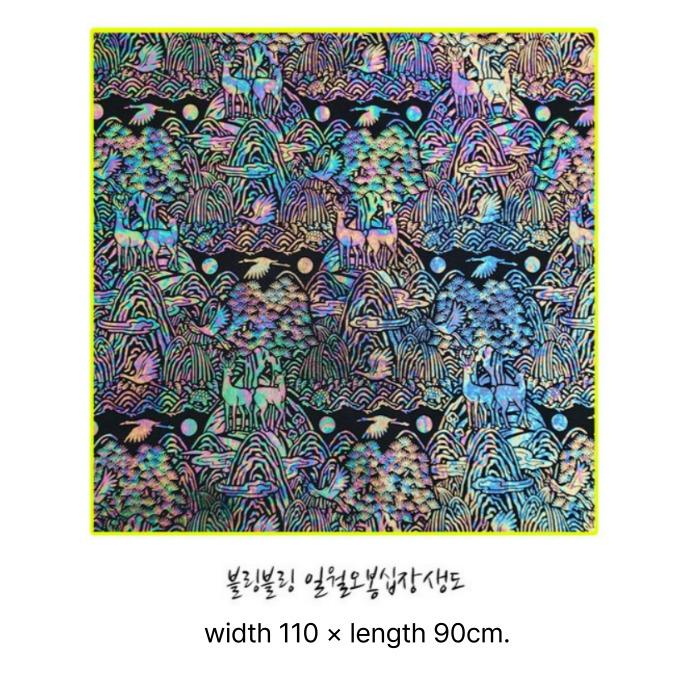 The K-Masterpiece Series No. 39 – Ilwol-Obong Sipjangsaengdo Fabric features a premium reinterpretation of Korea’s iconic folk painting that depicts the sun, moon, five mountain peaks, and ten traditional symbols of longevity. This fabric captures the grandeur of royal and traditional artistry, expressed through vivid colors and symbolic motifs. Its durable texture and high-quality printing make it ideal for quilting, crafts, interior décor, display pieces, and premium handmade goods.