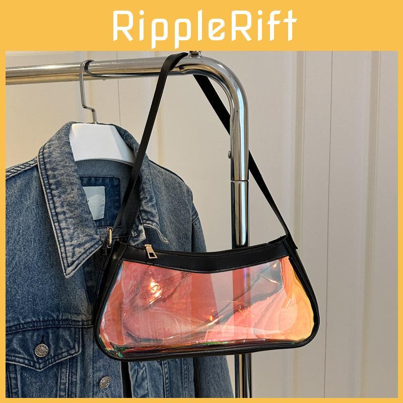 This stylish small shoulder bag features a transparent PVC construction with a laser element, enhancing its modern streetwear appeal. Measuring approximately 28.5cm in width and 13.5cm in height, it offers a compact yet functional design suitable for daily use. The bag employs a secure zipper closure and includes an interior polyester lining with an inner slip pocket for organization, providing reliable storage for essentials.