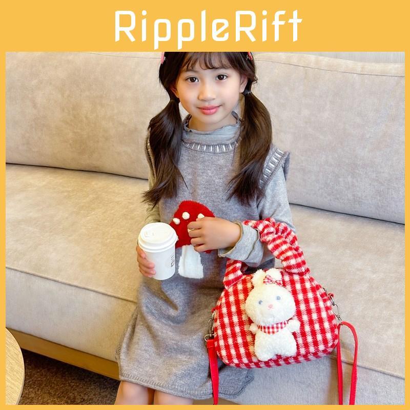 Adorable Plush Rabbit Design Korean Style Shoulder Bag For Kids With Stylish Checkered Pattern