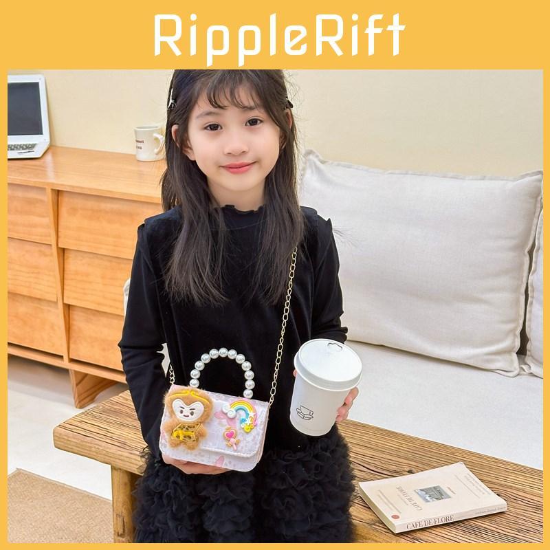 Adorable Cartoon Monkey Shoulder Bag For Girls With Sweet Floral Pearl Details