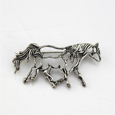 Fashion Antique Silver Openwork Alloy Horse Pony Brooch Animal Pin Brooch Unisex Corsage Badge Clothing Suit Jewelry Accessories