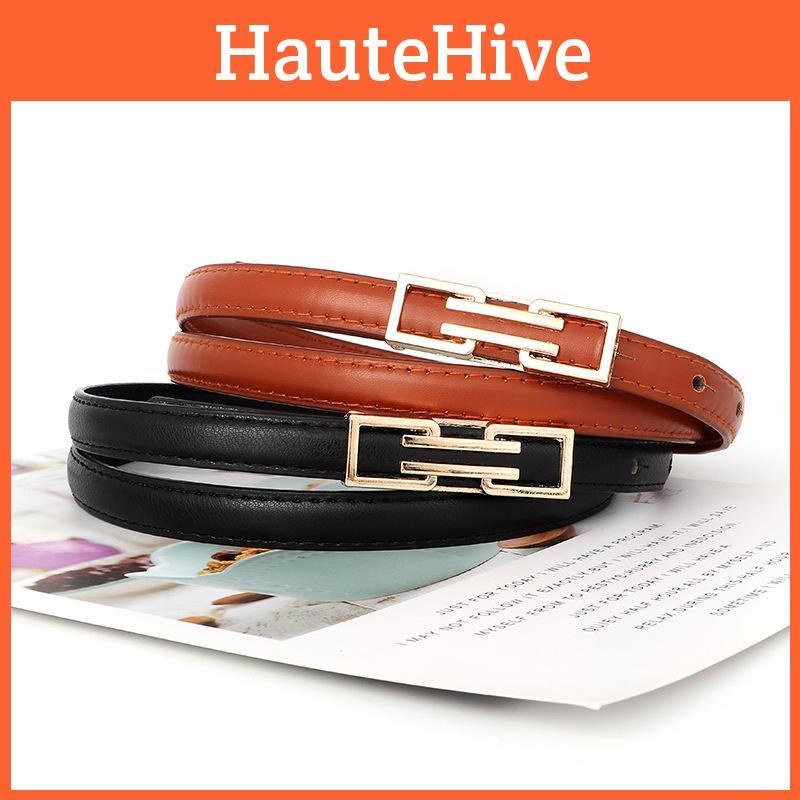 This fashion-forward women's belt features a slim profile made of durable PU leather, measuring 105cm in length and 1.4 cm in width. The alloy buckle with a smooth clasp provides secure fastening, while the geometric design adds trendy accents. Ideal for pairing with denim or tailored trousers, it enhances casual or office outfits. Wipe clean with a damp cloth for maintenance.