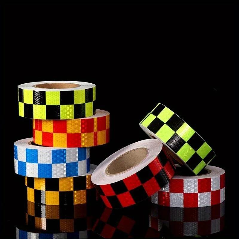 PVC Reflective Sticker Square Grid Checkered Pattern Reflector Tape Fluorescent Reflect Film for Truck Car Road